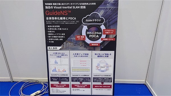 独自のカメラ技術(Visual SLAM)を使った物流倉庫や製造工場向けの屋内測位システムのGuideNSによって、倉庫内のヒトやモノの動きを正確にデータ化し、現場改善を支援